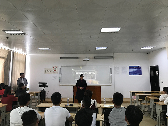 在班会上,韦英书记以班会主题“向学习要营养,靠拼搏绘人生”为切入点,提出大学生应勇于拼搏,肩负起历史使命;勤奋好学,才能猎取到真智才学,开拓知识的领域,武装头脑,成为自己的主宰。同时提到参军报国、无上光荣,鼓励同学们积极参军,希望同学们不仅在学识上提高自己,也能如军人般保家卫国,意志坚定,体魄强健。同时胡晓青老师和桂楚老师也给了同学一定的勉励和告诫。